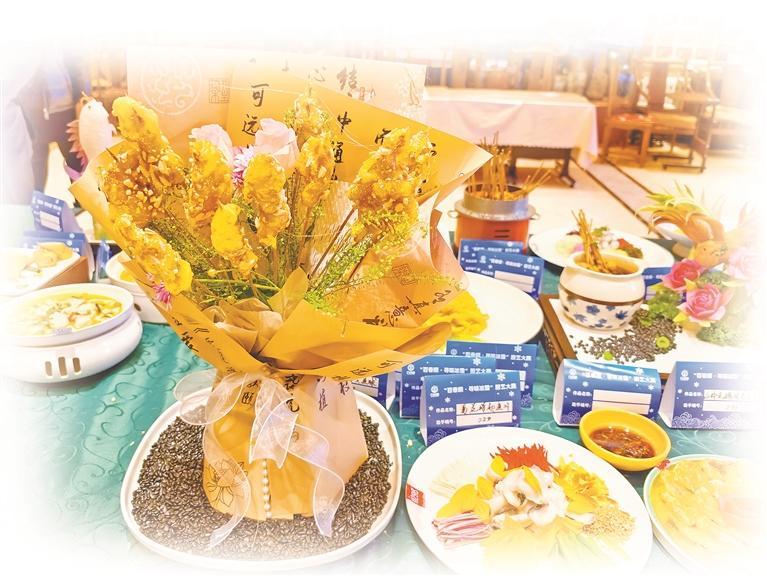 本屆比賽以固定食材、創(chuàng)意發(fā)揮的方式展開。比賽現(xiàn)場氣氛熱烈,百位選手在限定時間內(nèi)圍繞脆魚燒、嚴選黑魚片、小炒脆妃魚展開創(chuàng)意烹調(diào)。各位大廚以自己擅長的手法,結(jié)合龍江地域食材,制作出“鍋包魚片”“酥炸松仁魚片”“拔絲魚串”“藍莓脆妃魚”“雪山魚片”等一道道創(chuàng)意滿滿、風味獨特的創(chuàng)新菜。