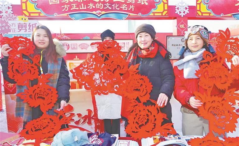 國家級非物質(zhì)文化遺產(chǎn)代表性項目剪紙(方正剪紙)展臺上,一幅幅剪紙作品宛如靈動的精靈,由方正剪紙衍生出的一系列文創(chuàng)產(chǎn)品,巧妙融入濃郁的龍江元素。哈爾濱市阿城區(qū)非物質(zhì)文化遺產(chǎn)代表性項目東方插花技藝傳承人張雨霞將插花技藝與中草藥巧妙融合,研發(fā)出別具一格的伴手禮,其中線香產(chǎn)品獨特的香氣源自東北大地饋贈的凍梨與人參。喜豐收雙城烤醋作為省級非物質(zhì)文化遺產(chǎn)代表性項目、龍江“老字號”產(chǎn)品,持續(xù)吸引市民和游客前來品嘗。冰雪雕技藝非遺文創(chuàng)展臺前,省級非物質(zhì)文化遺產(chǎn)代表性項目冰雪雕技藝傳承人張偉洪正全神貫注地指導(dǎo)市民和游客雕刻一件馬造型的冰雕,寓意馬到成功,他希望通過采冰節(jié),進(jìn)一步推動冰雪文化的傳承與發(fā)展。