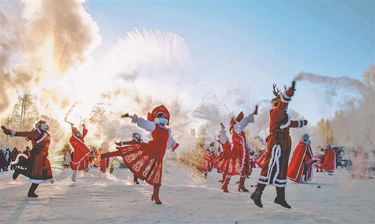 霧凇節(jié)潑冰。李喜萍攝