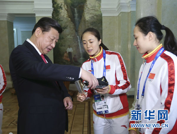 ??? 2月7日,中共中央總書記、國家主席、中央軍委主席習(xí)近平在俄羅斯索契親切看望參加第二十二屆冬季奧林匹克運動會的中國體育代表團。這是習(xí)近平同運動員親切交流。新華社記者 黃敬文 攝