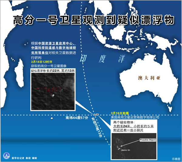 圖表:高分一號(hào)衛(wèi)星在南印度洋海域觀測(cè)到疑似漂浮物 新華社記者 秦迎 編制