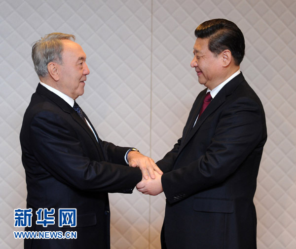 ????習(xí)近平表示,當(dāng)前形勢(shì)下,中哈合作的戰(zhàn)略意義更加凸顯。今年5月你將訪華并出席亞洲相互協(xié)作與信任措施會(huì)議峰會(huì)。我期待著同你就雙邊關(guān)系及重大國(guó)際和地區(qū)問題繼續(xù)深入交換意見,著力推進(jìn)經(jīng)貿(mào)、能源、農(nóng)業(yè)等領(lǐng)域合作。中方愿同哈方共同努力,確保訪問取得更多實(shí)質(zhì)成果。習(xí)近平表示,中哈作為亞信候任主席國(guó)和首倡國(guó),要密切配合,推動(dòng)樹立亞洲新安全觀,構(gòu)建亞洲安全和合作新架構(gòu),為亞洲和平與安全作出更大貢獻(xiàn)。