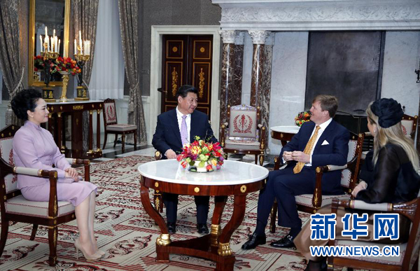 3月22日,國家主席習近平在阿姆斯特丹會見荷蘭國王威廉-亞歷山大。當習近平和夫人彭麗媛抵達王宮時,威廉-亞歷山大國王和馬克西瑪王后熱情迎接。雙方進行了親切友好的交談。資料圖