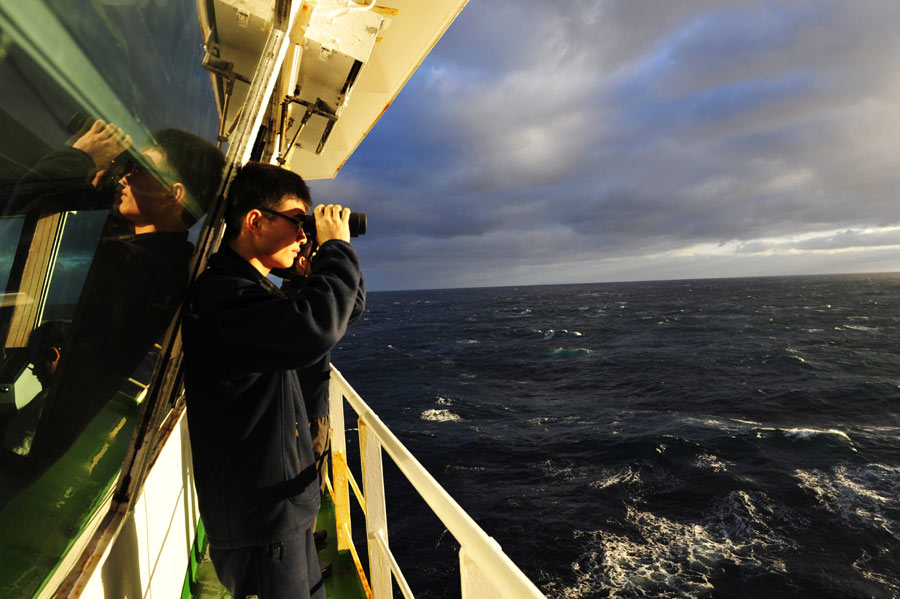????經中國海上搜救中心同意,“雪龍”號科考船28日下午全速趕往澳大利亞海事安全局最新調整的搜尋區(qū),并將與“海巡01”會合,進行中方船只現場指揮聯(lián)絡工作的交接。根據國際調查團隊向澳方提出的建議,澳大利亞海事安全局28日調整了搜索部署,搜尋范圍發(fā)生較大改變。新華社記者張建松攝