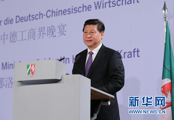 ??? 3月29日,國家主席習(xí)近平在杜塞爾多夫出席中德工商界舉行的招待會并發(fā)表題為《把握中國機遇,實現(xiàn)共同發(fā)展》的重要講話。新華社記者劉衛(wèi)兵攝