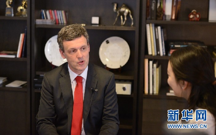 比利時(shí)王國駐華大使馬懷宇接受新華網(wǎng)專訪。新華網(wǎng)記者郭小天攝