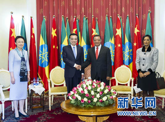 國(guó)務(wù)院總理李克強(qiáng)當(dāng)?shù)貢r(shí)間6日上午在亞的斯亞貝巴國(guó)家宮會(huì)見埃塞俄比亞總統(tǒng)穆拉圖。