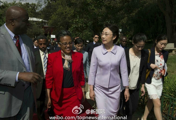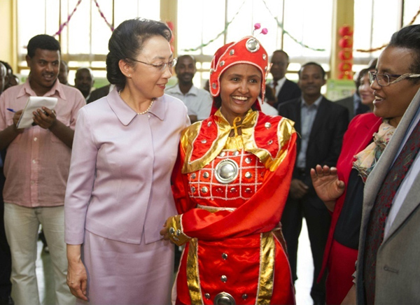 ????新華網(wǎng)北京5月6日電 據(jù)新華社“新國際”微博報(bào)道,李克強(qiáng)總理夫人程虹5日在埃塞俄比亞總理夫人羅曼·塔斯法耶的陪同下參觀了亞的斯亞貝巴大學(xué),觀摩漢語授課,與學(xué)生們交流,觀看學(xué)生們的中國文化才藝展示,還捐贈(zèng)了書籍、計(jì)算機(jī)等物品。程虹說,你們是文化的紐帶,感謝你們對(duì)中國人民的情誼。你們對(duì)中國文化的熱愛感動(dòng)了我,也會(huì)感動(dòng)中國人民。