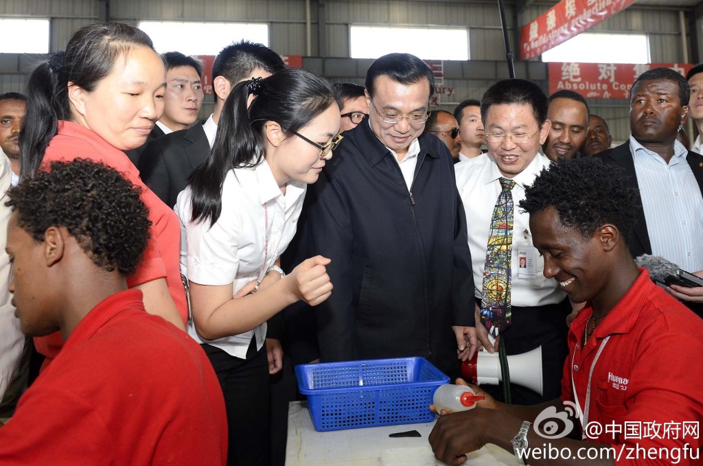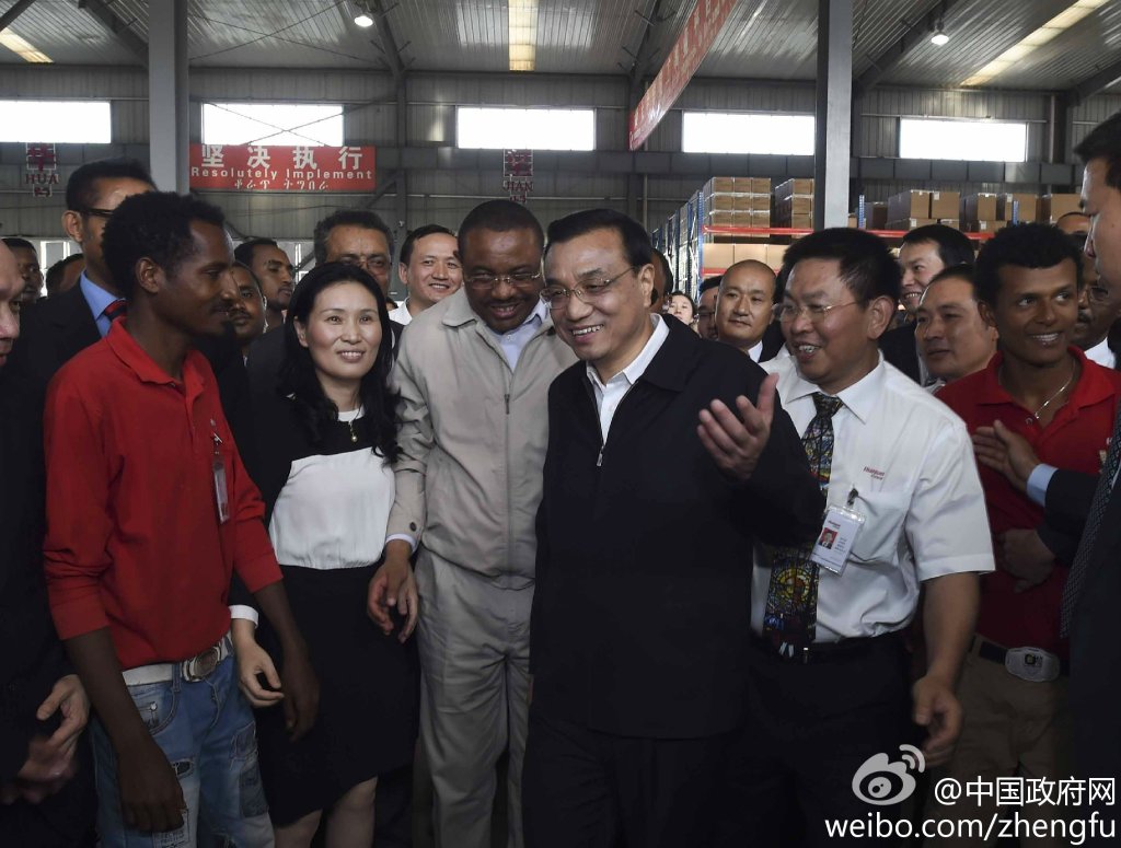 新華網(wǎng)北京5月6日電 據(jù)中國(guó)政府網(wǎng)微博報(bào)道,5日下午,李克強(qiáng)在埃塞總理陪同下參觀東方工業(yè)園。該園由中方投資興建,目前已為當(dāng)?shù)靥峁?000余個(gè)就業(yè)崗位。李克強(qiáng)說,中國(guó)愿意把可轉(zhuǎn)移的勞動(dòng)密集型產(chǎn)業(yè)優(yōu)先轉(zhuǎn)移到非洲,帶動(dòng)當(dāng)?shù)鼐蜆I(yè),促進(jìn)發(fā)展,增強(qiáng)非洲自我發(fā)展能力,造福雙方人民。