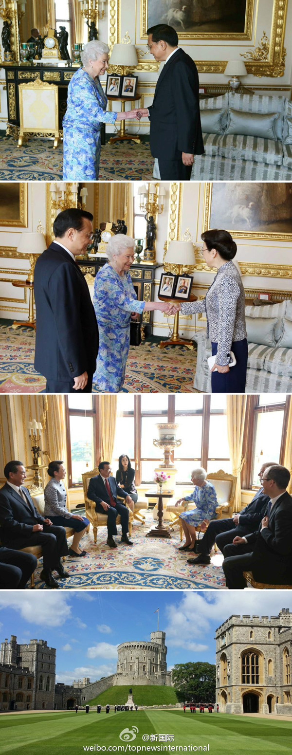 新華網(wǎng)北京6月17日電 據(jù)新華社“新國際”微博報(bào)道, 國務(wù)院總理李克強(qiáng)17日上午在溫莎宮會(huì)見英國女王伊麗莎白二世。李克強(qiáng)說,中英兩國堪稱東西方文明的代表,我們愿與英方互學(xué)互鑒。中國歡迎英國王室成員多到中國走一走,看一看。女王愉快回憶起1986年訪華時(shí)情景,稱中國之行給她留下深刻印象。
