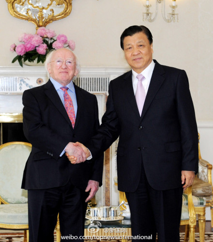 ??? 新華網(wǎng)北京6月18日電 據(jù)新華社“新國(guó)際”微博報(bào)道,中共中央政治局常委、中央書記處書記劉云山17日結(jié)束愛爾蘭之行。他在會(huì)見愛總統(tǒng)希金斯時(shí)說(shuō),中國(guó)與愛爾蘭雖相距遙遠(yuǎn),但在雙邊和國(guó)際事務(wù)中存在廣泛的共同利益,兩國(guó)關(guān)系成為不同幅員、制度、發(fā)展階段國(guó)家平等相待、友好合作的典范。
