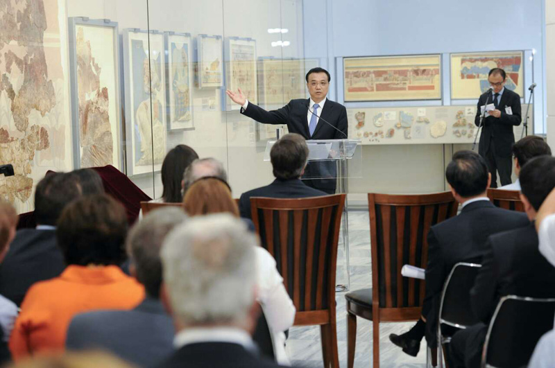??? 【李克強(qiáng)引中希先哲名言談兩國合作】李克強(qiáng)21日在伊拉克利翁博物館新館開館儀式上談到中希合作潛力時,引用古希臘哲學(xué)家赫拉克利特名言:“人不能兩次踏進(jìn)同一條河流”與中國思想家孔子名言:“逝者如斯夫,不舍晝夜”。李克強(qiáng)說,中希合作機(jī)不可失、時不我待,期待兩國深挖潛力,合作之路越走越寬。