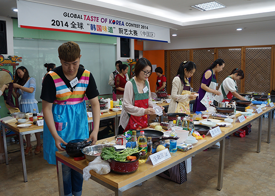 ????6月28日,駐華韓國文化院,2014“韓國味道”廚藝大賽現(xiàn)場。圖為參賽選手緊張有序地準(zhǔn)備中。新華網(wǎng) 王俊景 攝
