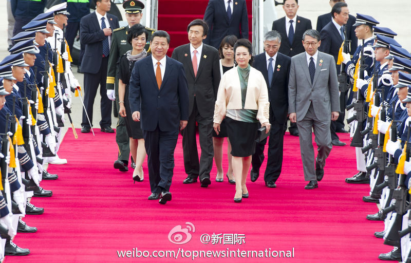 ??? 新華網(wǎng)北京7月3日電 據(jù)新華社“新國(guó)際”微博報(bào)道,禮兵注目,禮炮鳴響。3日中午,習(xí)近平主席的專機(jī)穩(wěn)穩(wěn)降落在首爾城南機(jī)場(chǎng),習(xí)近平和夫人彭麗媛走下舷梯,受到韓方熱烈歡迎。這是習(xí)近平擔(dān)任國(guó)家主席后首次訪韓。2005年、2009年,他曾兩次訪問韓國(guó)。?