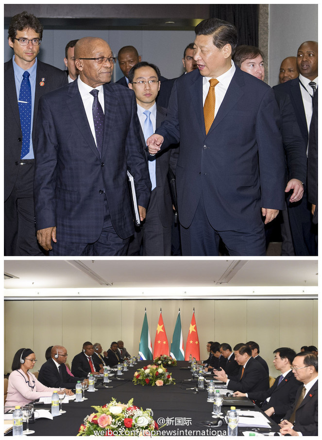 ???? 新華網(wǎng)北京7月15日電 據(jù)新華社“新國(guó)際”微博報(bào)道,習(xí)近平主席14日在巴西會(huì)見(jiàn)南非總統(tǒng)祖馬。習(xí)近平指出,和平與發(fā)展是非洲的主題。中非是命運(yùn)共同體,我們?cè)敢馔侵迖?guó)家分享發(fā)展經(jīng)驗(yàn),積極參與非洲和平安全事務(wù),推進(jìn)非洲跨國(guó)跨區(qū)域互聯(lián)互通項(xiàng)目,為促進(jìn)非洲一體化作出更大貢獻(xiàn)。?