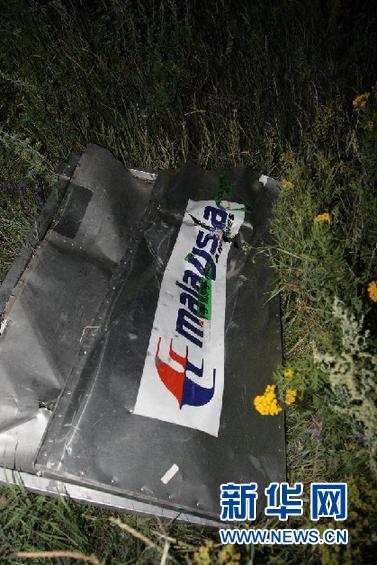 這是7月17日在烏克蘭東部地區(qū)拍攝的失事客機殘骸。 新華社發(fā)(亞歷山大·葉爾莫琴科攝)