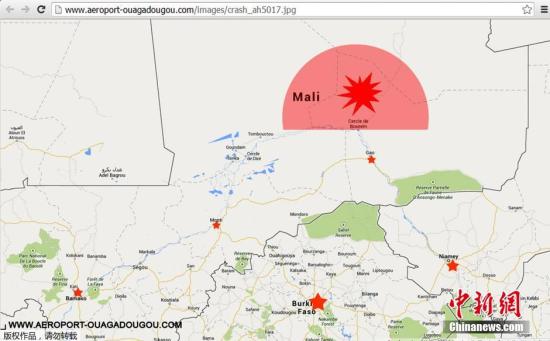 阿爾及利亞航空公司AH5017客機(jī)24日從布基納法索首都瓦加杜古飛往阿爾及利亞首都阿爾及爾,起飛約50分鐘后失去聯(lián)系。阿爾及利亞方面于當(dāng)天晚些時(shí)候證實(shí),失聯(lián)AH5017客機(jī)已經(jīng)在鄰國馬里墜毀。