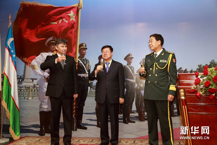 7月31日,中國駐烏茲別克斯坦大使館以孫立杰大使和黃天昌武官名義在塔什干米蘭賓館隆重舉行“八一”軍節(jié)招待會(新華社發(fā) 記者沙達提)