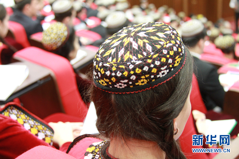 土庫(kù)曼斯坦姑娘戴著小帽? 記者 盧敬利攝