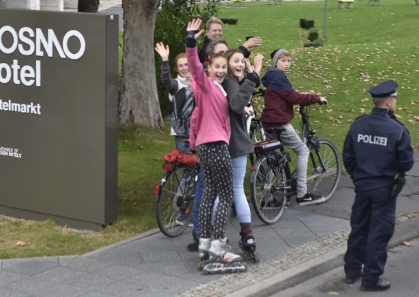 克強(qiáng)總理抵達(dá)后,柏林的街道兩旁,不少當(dāng)?shù)孛癖妼藦?qiáng)總理的車隊揮手、拍照。