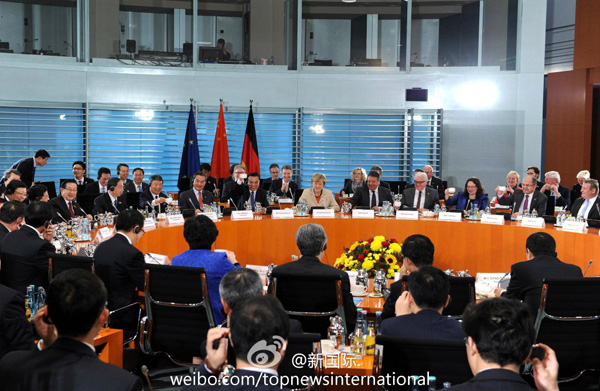 ????新華網(wǎng)北京10月10日電 據(jù)新華社“新國際”微博報(bào)道,“Happy Birthday!”在第三輪中德政府磋商會(huì)上,德國總理默克爾開場先向中方農(nóng)業(yè)部長祝福生日!她說:雖然你不能和家人一起過,但我們會(huì)讓你過個(gè)愉快的生日。李克強(qiáng)總理提議大家舉水杯為這特別的生日送上祝福,還風(fēng)趣地說祝福農(nóng)業(yè)部長,意味著有保障糧食安全的基礎(chǔ)。