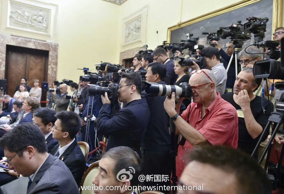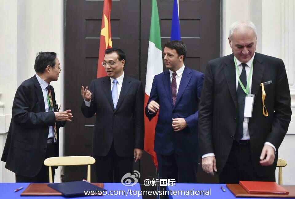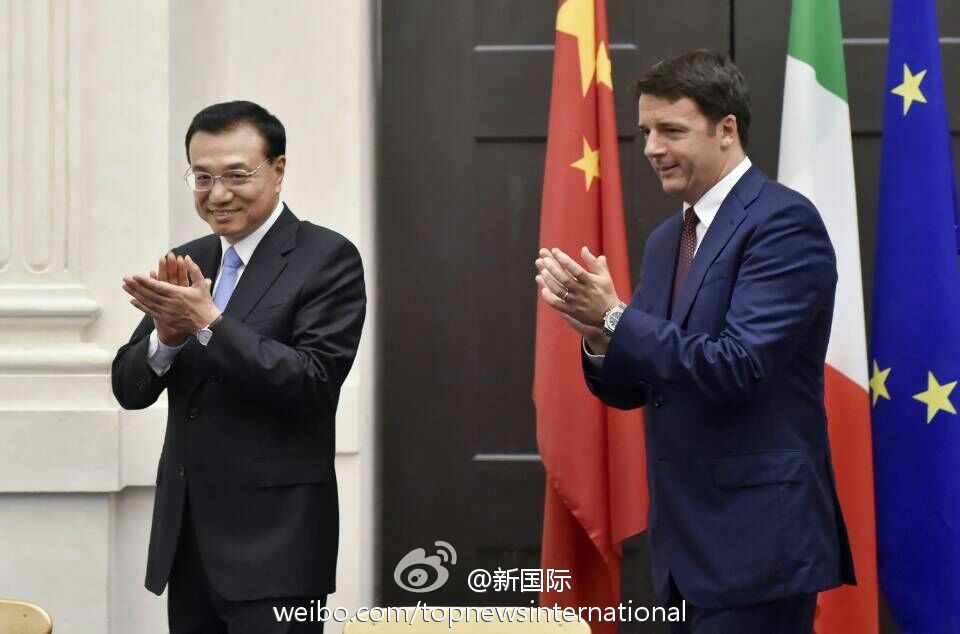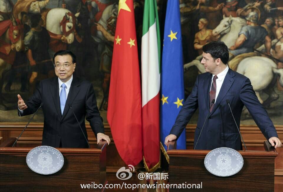 ??? 新華網(wǎng)北京10月15日電 據(jù)新華社“新國(guó)際”微博報(bào)道,國(guó)務(wù)院總理李克強(qiáng)14日與意大利總理倫齊在意總理府共同會(huì)見(jiàn)記者。李克強(qiáng)說(shuō),很高興來(lái)到不是一天建成的羅馬,中方不追求對(duì)意貿(mào)易順差,對(duì)擴(kuò)大中意貿(mào)易合作規(guī)模充滿信心,愿與意方繼續(xù)深挖務(wù)實(shí)合作。即將簽署的協(xié)議規(guī)模高達(dá)80億歐元,這說(shuō)明貿(mào)易投資規(guī)模還會(huì)擴(kuò)大。?