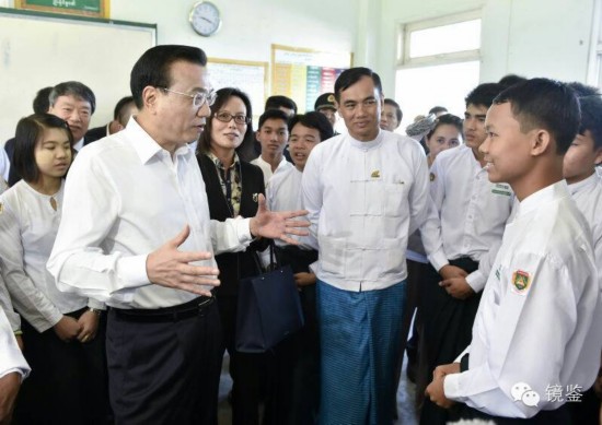 在內(nèi)比都第十四中學,有個學生問起總理的求學經(jīng)歷??偫碚f,自己像你們這個年齡的時候,中國還比較貧困,沒有大家這么好的條件讀書學習,自己高中畢業(yè)后先到農(nóng)村當農(nóng)民養(yǎng)活自己,但一直堅持學習,因為相信知識就是力量。