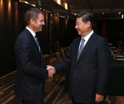 圖為習(xí)近平主席在悉尼會(huì)見(jiàn)澳大利亞新南威爾士州州長(zhǎng)貝爾德。
