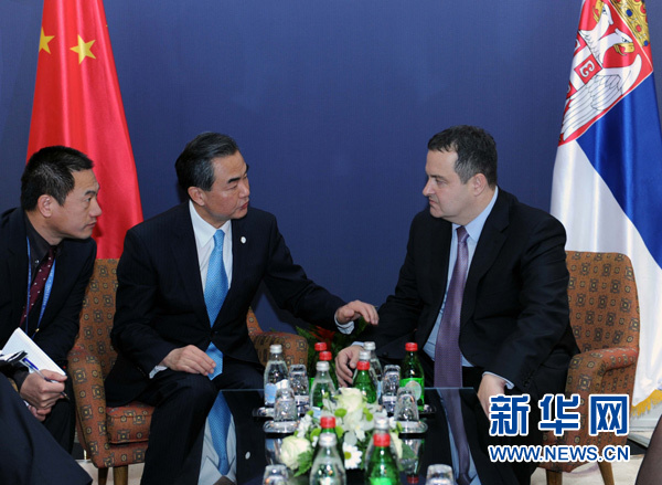 ??? 12月17日,正在陪同李克強(qiáng)總理訪問塞爾維亞的外交部長王毅應(yīng)約會見塞爾維亞第一副總理兼外長達(dá)契奇。 新華社記者 饒愛民 攝