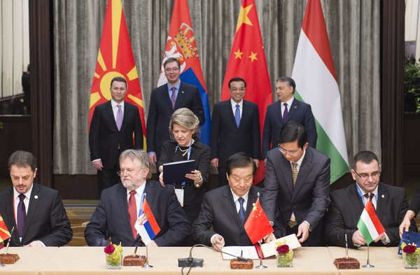 ????17日上午,中國、匈牙利、塞爾維亞、馬其頓四國總理共同見證了合作建設(shè)中歐陸??炀€北段匈塞鐵路的諒解備忘錄和通關(guān)便利化協(xié)議的簽署,為中歐陸海快線的建設(shè)奠定了重要基礎(chǔ)。