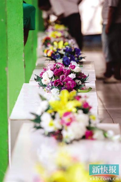 當(dāng)電視播放當(dāng)天軍人抬著2具遺體棺材的畫面時,餐廳里瞬間安靜下來,沒有了刀叉的碰撞聲,人們齊齊把眼光聚集在電視上,那令人心痛悲傷的畫面:蓋著鮮花的棺材,被早在泗水守候的兩隊軍人莊嚴(yán)而沉重地慢慢抬下飛機(jī),然后輕輕地放在軍車上,在警車的開路下,徐徐地向泗水醫(yī)院駛?cè)ァ?/p>