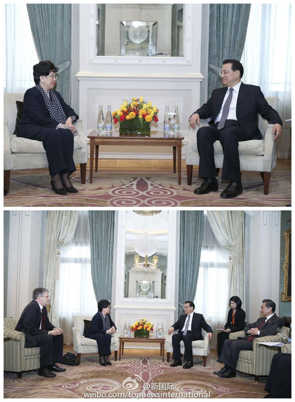 ????新華網(wǎng)北京1月23日電 據(jù)新華社“新國際”微博報(bào)道,李克強(qiáng)總理22日在蘇黎世會見世衛(wèi)組織總干事陳馮富珍。他說,中國將盡一個(gè)發(fā)展中大國的責(zé)任,繼續(xù)向埃博拉疫區(qū)提供力所能及的幫助,與國際社會一道幫助疫區(qū)人民早日驅(qū)除病魔。他贊揚(yáng)陳馮富珍多次親赴疫區(qū),表現(xiàn)出了該組織的無畏精神。