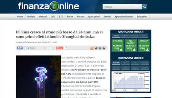 意大利財(cái)經(jīng)在線網(wǎng)站1月20日發(fā)表文章稱(chēng)雖然2014年中國(guó)的國(guó)內(nèi)生產(chǎn)總值是24年來(lái)最低,但工業(yè)生產(chǎn)、零售業(yè)和股市都釋放出健康和積極的信號(hào)。
