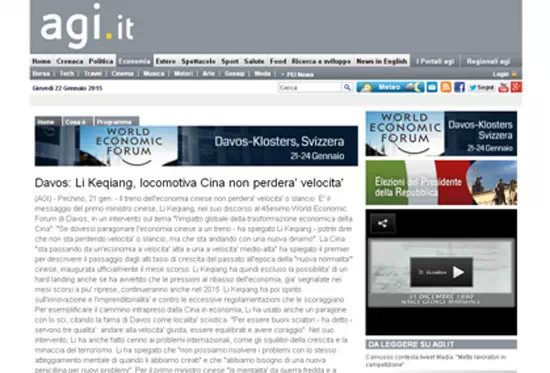 意大利24小時(shí)太陽(yáng)報(bào)1月22日發(fā)表題為《中國(guó)重新向世界自我介紹》的評(píng)論性文章,介紹了李克強(qiáng)在世界經(jīng)濟(jì)論壇上的講話。文章稱(chēng),雖然國(guó)際社會(huì)一直在用西方國(guó)家的種族主義中心心態(tài)以及舊的眼光看待中國(guó),中國(guó)國(guó)務(wù)院總理李克強(qiáng)的長(zhǎng)期戰(zhàn)略眼光和他的新政策還是給達(dá)沃斯的聽(tīng)眾們留下深刻印象。