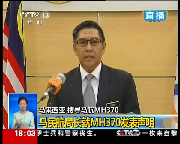 ??? 1月29日,馬來西亞民航局宣布,馬航370航班失事,并推定機上所有239名乘客和機組人員已遇難。這是馬來西亞民航局總監(jiān)愛茲哈爾丁發(fā)表講話的視頻截圖。新華社發(fā)