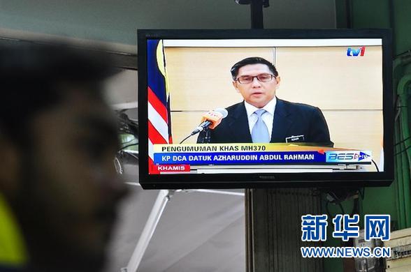 ????1月29日,在馬來(lái)西亞吉隆坡,電視直播馬來(lái)西亞民航局局長(zhǎng)愛(ài)茲哈爾丁發(fā)表聲明。馬來(lái)西亞民航局當(dāng)日宣布,馬來(lái)西亞航空公司MH370航班失事,推定機(jī)上全部239名乘客及機(jī)組成員已遇難。 新華社發(fā)(張紋綜攝)
