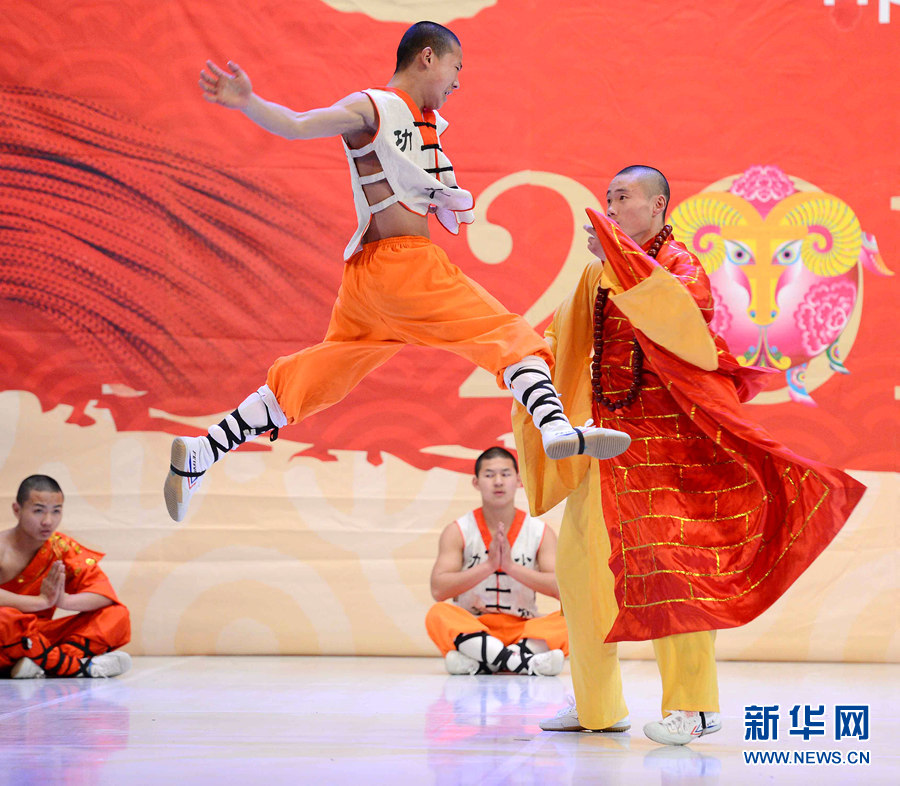 2月4日晚,在烏茲別克斯坦首都塔什干突厥宮,藝術家在表演中國武術和舞蹈。新華網(wǎng)記者 沙達提 攝