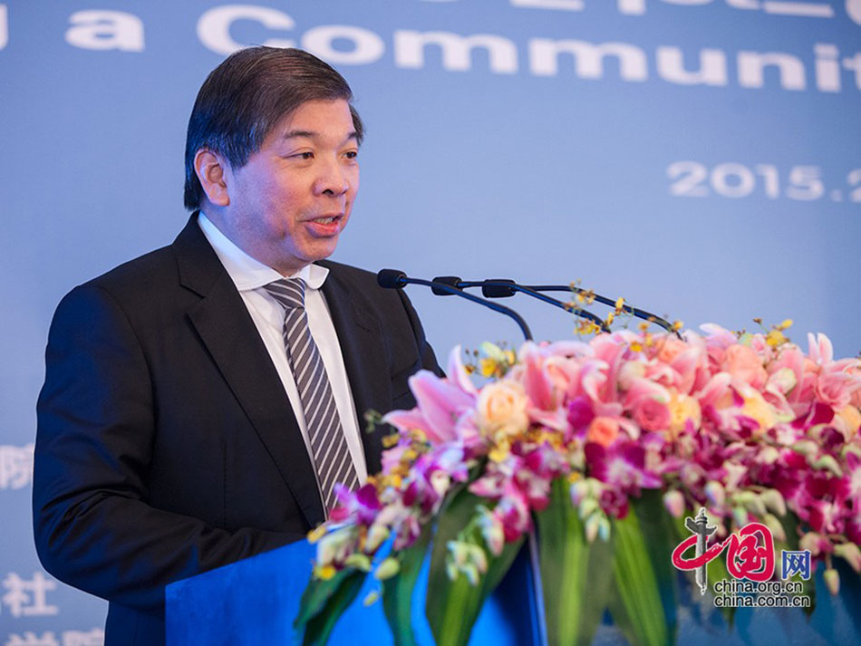 圖為新加坡工商聯合總會主席、 新加坡太平船務董事總經理張松聲在“21世紀海上絲綢之路國際研討會”高峰論壇發(fā)表演講。中國網記者 鄭亮 攝