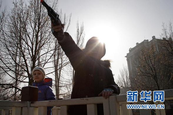 ????資料圖片:2月15日,在烏克蘭東部城市頓涅茨克,一名男孩手持玩具槍在街頭玩耍。烏克蘭武裝力量總參謀部發(fā)言人謝列茲尼奧夫15日說,自當(dāng)?shù)貢r(shí)間凌晨3時(shí)起,烏東部沖突地區(qū)的槍炮射擊均已停止,?;饏f(xié)議得到遵守。 新華社發(fā)(葉爾莫琴科攝)