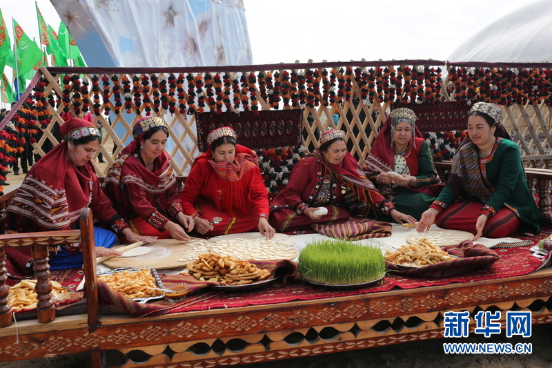 ????以往過著游牧和半游牧生活的人們在冰雪消融、牲畜產(chǎn)仔的時節(jié),都會以這一傳統(tǒng)佳節(jié)歡慶新生活。 21日上午,在阿什哈巴德以東40來公里處專門為節(jié)日搭建的場地上,土庫曼斯坦內(nèi)閣、外交使節(jié)、民眾和學(xué)生參加了隆重的慶祝活動。活動中,青年男女、學(xué)齡前兒童載歌載舞,民眾和藝術(shù)家展示傳統(tǒng)的編織和手工藝術(shù),青年男女高高地蕩起秋千,汗血寶馬進行馬技表演,土庫曼咬狼犬、羊群和駱駝或圍在欄子里,或被主人牽在手中,展現(xiàn)出游牧民族的生活景象。