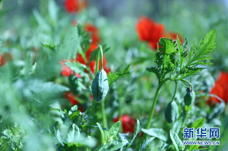 紅罌粟含苞待放 新華網(wǎng)發(fā) 記者盧敬利 攝