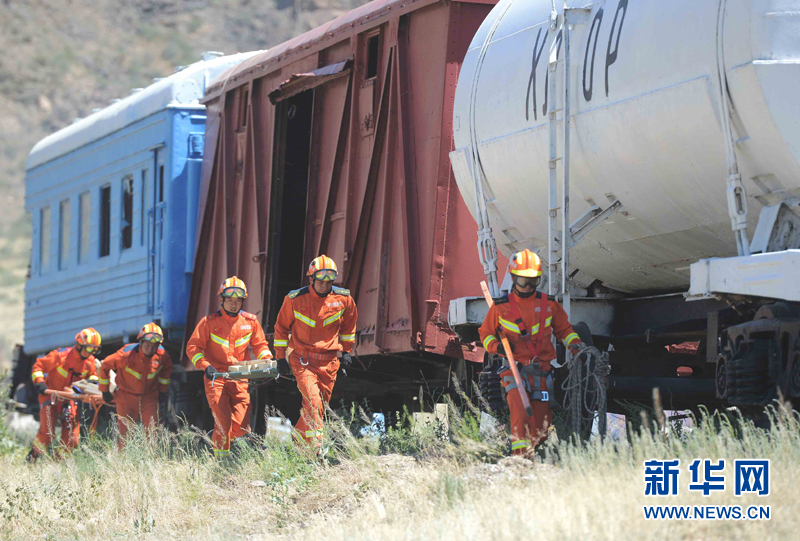 6月3日,代表中國參加上合組織國際救援聯(lián)合演練的新疆消防總隊隊員在哈薩克斯坦阿拉木圖州塔姆卡壘塔斯景區(qū)的哈內(nèi)務部緊急情況委員會教練基地“巖石城-阿斯塔納”參加演練。新華社記者沙達提攝