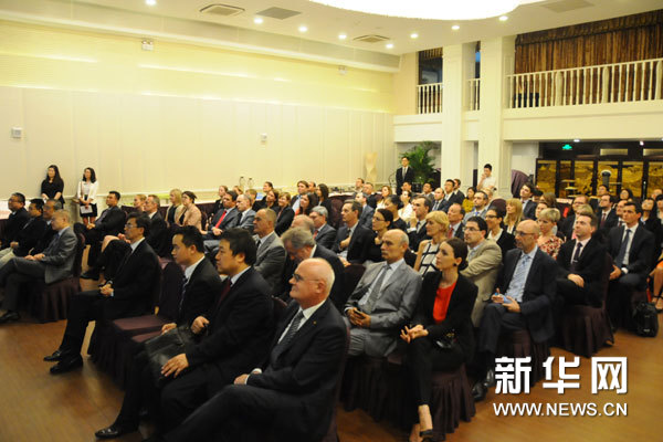 ??? 7月16日,第十屆歐洲外交官研討班開班儀式暨《中國(guó)歐盟建交40周年》紀(jì)念畫冊(cè)發(fā)行儀式在京舉行,共有31位來(lái)自歐洲各國(guó)及歐盟機(jī)構(gòu)的駐華使節(jié)出席研討班開班儀式。 新華網(wǎng)記者 張藝 攝