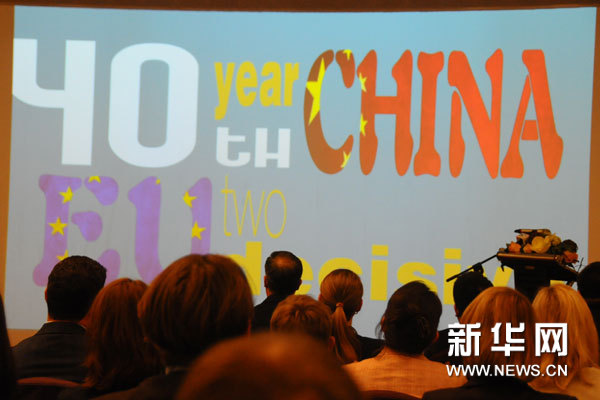 ??? 7月16日,第十屆歐洲外交官研討班開班儀式暨《中國(guó)歐盟建交40周年》紀(jì)念畫冊(cè)發(fā)行儀式在京舉行,圖為學(xué)員們觀看中國(guó)歐盟四十周年紀(jì)念短片。新華網(wǎng)記者 張藝 攝