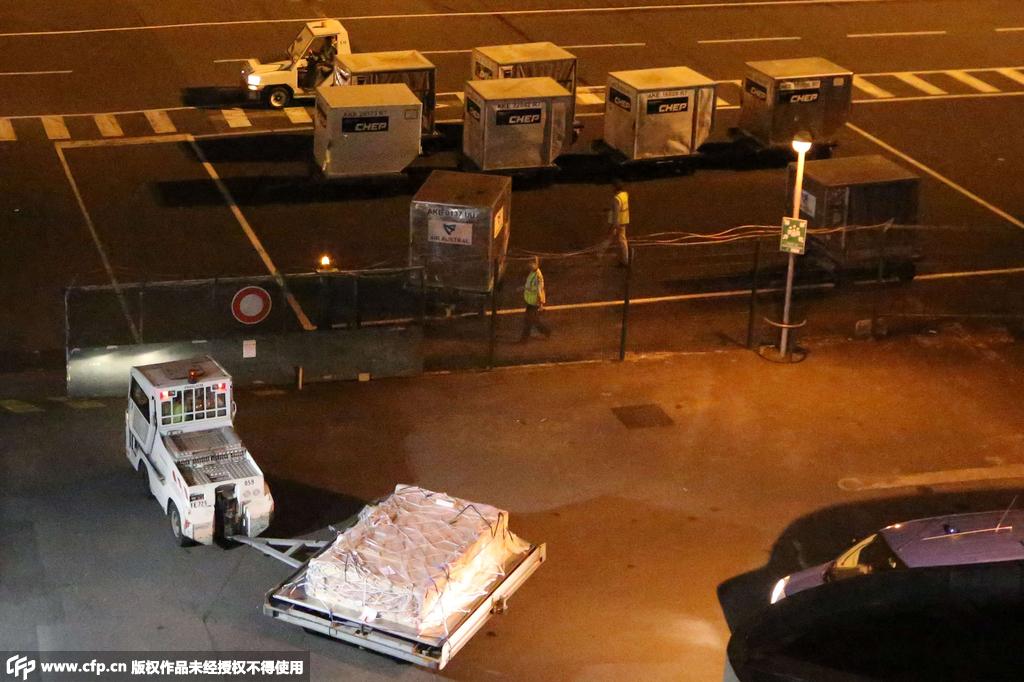 當(dāng)?shù)貢r(shí)間2015年7月31日,法國留尼汪島,機(jī)場車輛運(yùn)輸發(fā)現(xiàn)的疑似MH30副翼,機(jī)翼殘骸將被運(yùn)往法國。