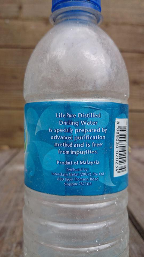 圖為當(dāng)?shù)芈蓭煱l(fā)現(xiàn)的礦泉水瓶,上面標有“產(chǎn)自馬來西亞”。