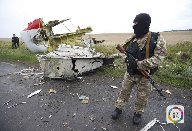 2014年7月18日,在烏克蘭頓涅茨克地區(qū),一名民間武裝人員在馬航MH17航班客機(jī)失事區(qū)域警戒。新華社/路透