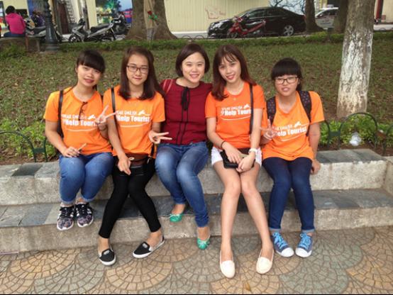 在這里,記者遇到了一群為外國游客提供幫助的越南大學生志愿者,他們身穿橙色的T恤衫,年輕的臉上洋溢著親切的笑容。