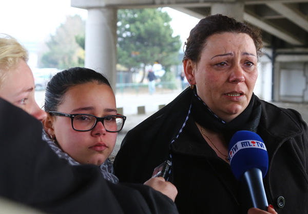 3月22日,在比利時首都布魯塞爾,兩名現(xiàn)場目擊者在接受采訪時潸然淚下。新華社記者龔兵攝