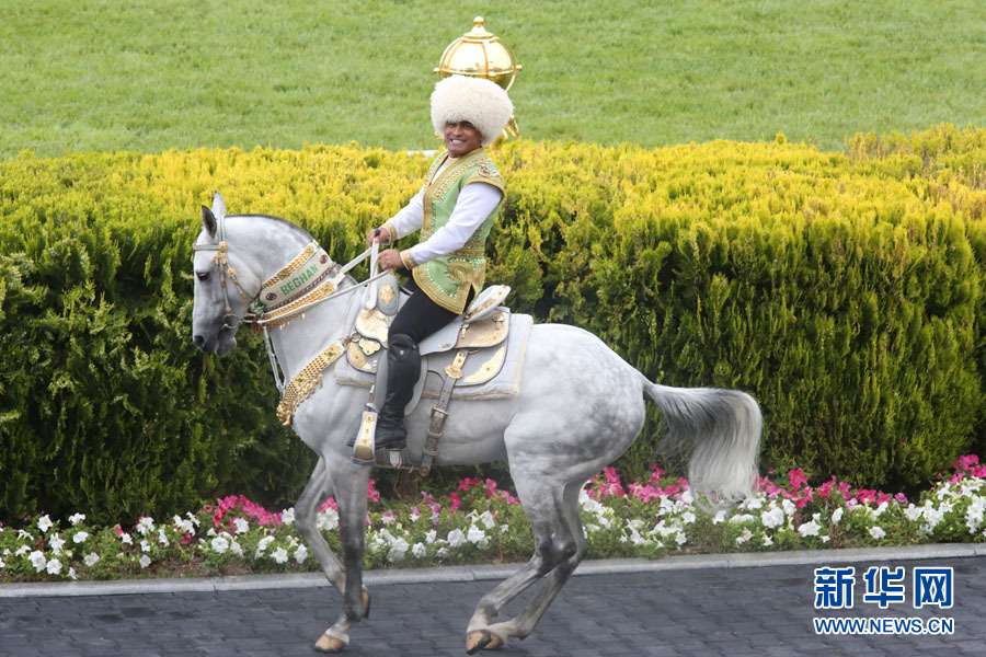4月23日在土庫曼斯坦首都阿什哈巴德拍攝的獲得2016年度“最美汗血馬”稱號的“別格汗”。新華網(wǎng)記者 盧敬利 攝